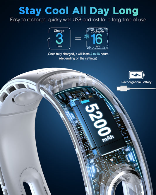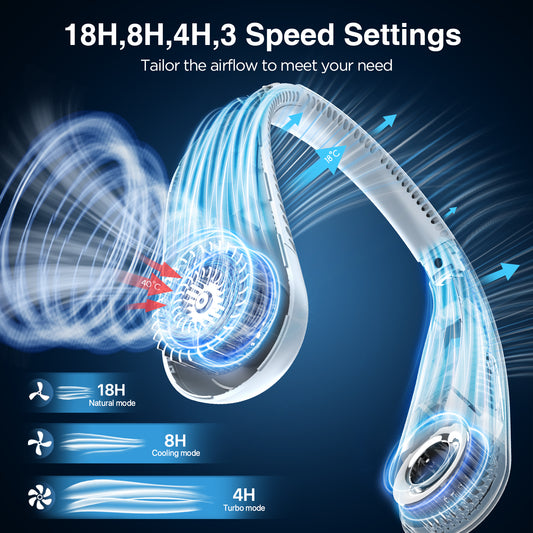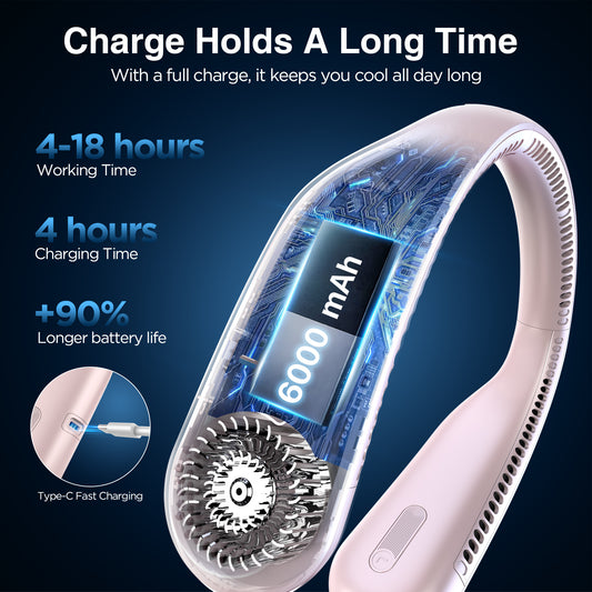 Hotsales Neck Fan, Hands Free Bladeless Neck Fans Portable Rechargeable, 6000 mAh Battery Operated Wearable Personal Fan, Cooling Neck Fan, 3 Speeds, USB Fan Gifts for Men, Women, Travel, Outdoor