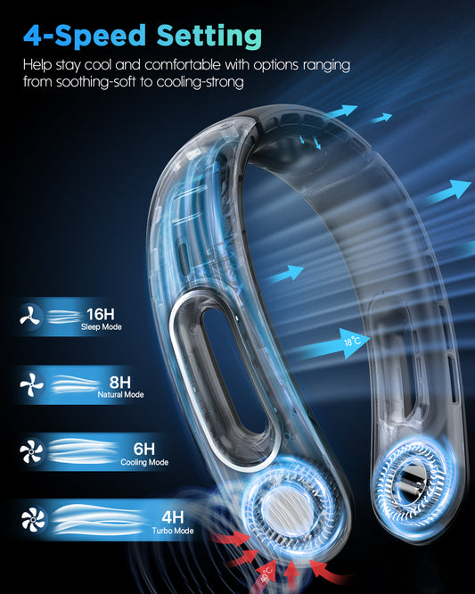 Hotsales Neck Fan, Hands Free Bladeless Neck Fans Portable Rechargeable, 360° Cooling Neck Fan, 4 Speeds, Quiet, 5200 mAh Battery Operated USB Wearable Personal Fan Gifts for Women, Travel, Outdoor